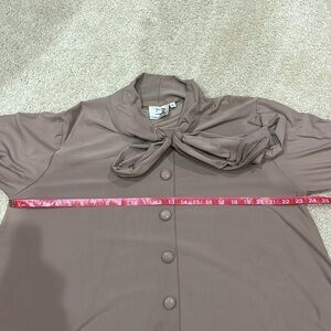 This taupe button-down dress is both elegant and comfortable! It would look so cute with a cream lacy skirt peeking out at the bottom π€π€