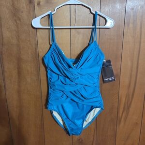 NWT Miraclesuit Magic Suit Blue Scrunched One Piece Baithing Suit Size 10