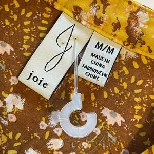 Joie Ruffled Button Blouse Women's Medium Mustard Floral Mixed Print Peasant Top