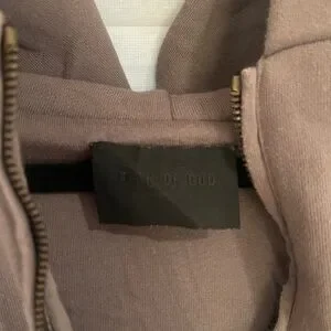 Fear Of God, half zip Stylish greyish/brown half-zip hoodie with FG7C logo. Features a front pocket.