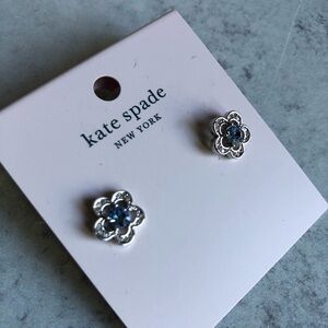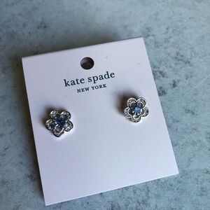 Kate Spade Pierced Earrings Light Sapphire Jeweled Scallops Silver NWT