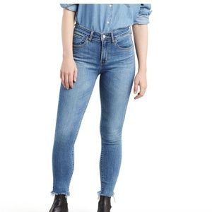 LEVI'S 721 HIGH RISE SKINNY JEANS frayed bottom Cuff 5 Pocket Zip Fly 5 Pocket