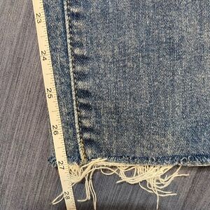 Frayed bottom cuff. Zip fly 5-pocket styling High rise 60% Cotton, 23% viscose, 16