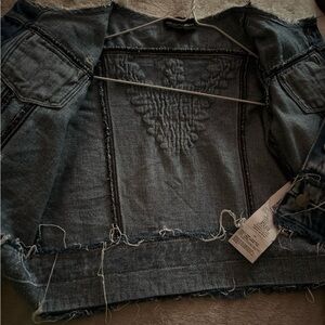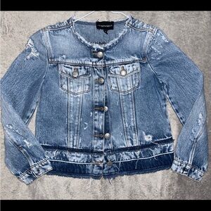 Lightly used and is in great condition, distressed denim jacket, runs true to size, can fit a little girl age 8-9. 100% cotton and great quality. This jacket is super cute and look great with almost anything