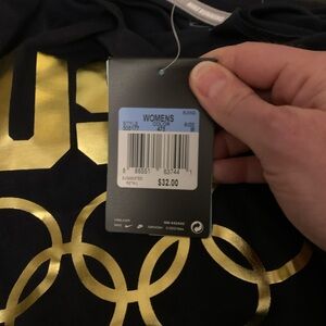 NWT, Navy Nike Dri-Fit T-shirt with gold USA Olympic rings design.