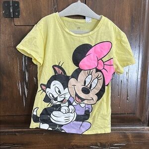 This vibrant yellow tee showcases beloved Disney Minnie Mouse in a playful cartoon style. Made from lightweight cotton, it offers comfort and breathability for everyday wear. The short sleeves and cheerful design make it a fun addition to any wardrobe.