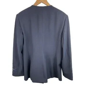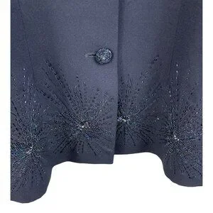 John Meyer Norwich Womens Size 12 Blue Vintage Lined Beaded Shoulder Pads Blazer