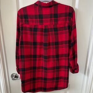 Stylish red and black plaid button down shirt by Express. Size small. Great condition.
