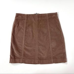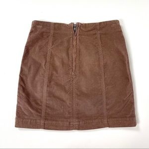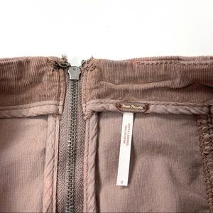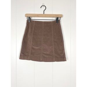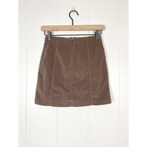Modern Femme Cord Mini Skirt from Free People. Size 0 in Birchwood. Only worn once, but got damaged in the wash - I switched from liquid to pods & it somehow messed up a bunch of my clothes by slightly bleaching it. Please see all photos. Super cute skirt. Even though I barely wear skirts, I love this style & purchased it in 3 other colors lol. For reference, I’m 5’3” and was 105lbs. when this fit me.