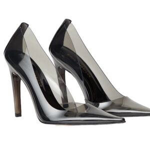 NWOT Good American Cinderella pump heels clear stiletto in Light Smoke women’s 9