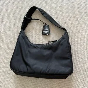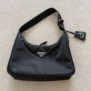 Elevate your style with this sleek black nylon shoulder bag from Prada. Perfect for any occasion, this bag combines luxury and functionality.