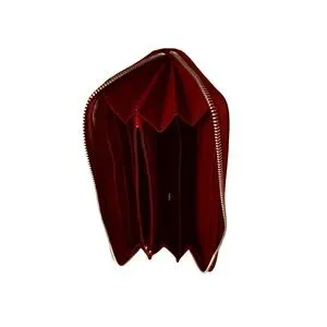 Elegant red leather wallet with embossed interlocking Gucci logo. Perfect for stylish organization.