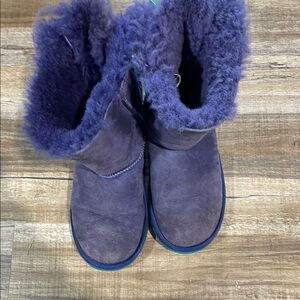 Keep your child's feet cozy and stylish with these UGG boots. Featuring a vibrant purple color with green accents, these boots are perfect for any occasion.