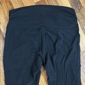 Stylish black cross over waist cropped leggings. Ideal for workouts or casual outings.