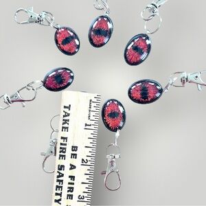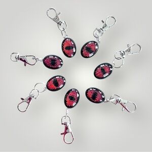Unique handmade glittery orange/red dragon eye keychain with a silver clasp keychain. Perfect for adding a mystical touch to your keys. Complete with a “Handmade” tag and pretty organza gift bag. Every dragon eye is slightly different being each hand crafted item a one of a kind! Great for yourself or gift as a gift! 🎁