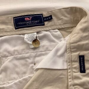 Men’s Vineyard Vines by Shep & Ian Breaker Pant light khaki color made of 98% cotton 2% spandex. Perfect for any occasion including business casual, they offer both comfort and class. Men’s size 35 X 30 please see measurements