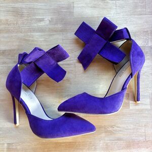 MAIERNISI JESSI Purple Suede point toe Stiletto heel bow knot ankle strap sz 7.5