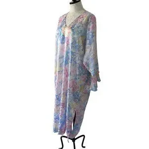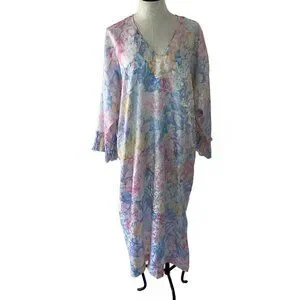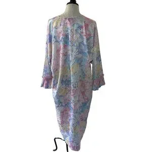 Mary McFadden Vintage Womens Nightgown Size Large Pastel Floral Watercolor
