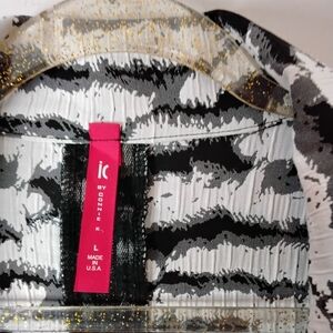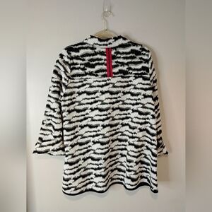 Elevate your style with this striking black and white zebra print jacket. Perfect for adding a bold touch to any outfit.
