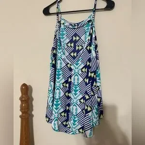 Geometric Blue and Green Women's Top