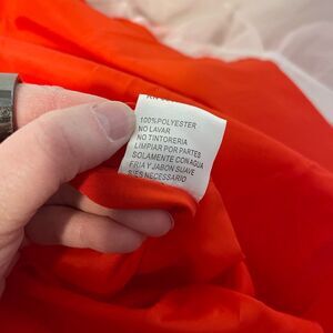 Size 6. Dress has a couple of stains (pictured) and needs to be dry cleaned. Otherwise great condition and is a gorgeous satin ball gown perfect for prom, pageants, etc.