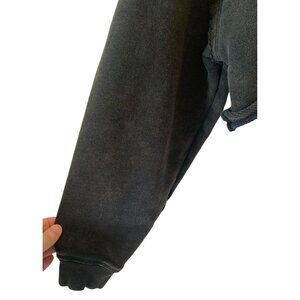 ALPHALETE Washed Black Distressed Altered Neck French Terry Crop Sweatshirt L