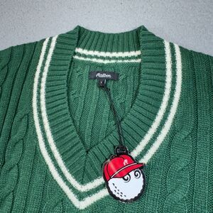 Malbon Sweater Men Large Green Cable Knit V Neck Golf Ivy Preppy Sweatshirt NWT