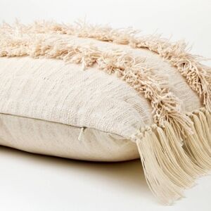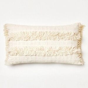 Studio McGee NWT Oversized Woven W/ Frayed Detail Lumbar Throw Pillow Off-White