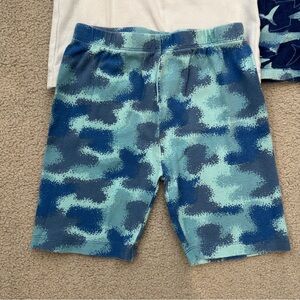 - 1 navy short sleeve top with allover shark graphic print