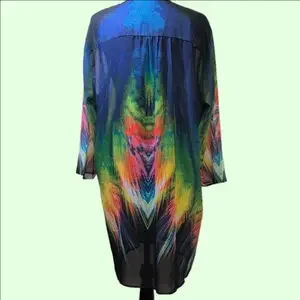 Serengeti sheer, long sleeved, multi color dress. Size XL.