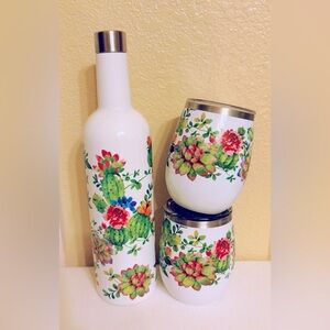 Vibrant floral and cactus design on drinkware. Perfect for adding a touch of nature to your beverages.