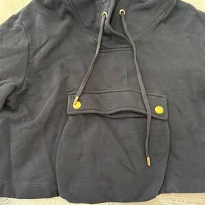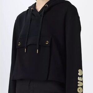 Cropped Hooded Logo Sweatshirt by Love Moschino. Oversized, boxy fit. I don’t see a size, so I will be adding measurements.