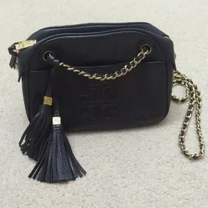 Elevate your style with the Tory Burch Black Leather Crossbody Bag. Featuring a chic design with gold accents, this bag is perfect for any occasion. The luxurious leather and iconic logo add a touch of elegance to your ensemble.