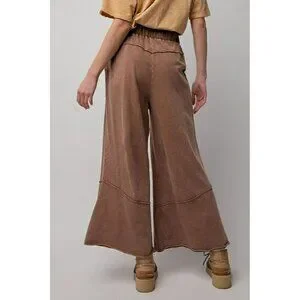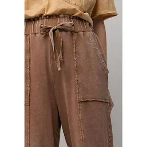 Chillin' just got a whole lot easier with these feeling-good wide-leg pants! These pants are crafted from mineral-washed terry knit fabric, creating a comfortable and stylish wide-leg silhouette. These pants feature side pockets, lined detailing, and a drawstring elastic waistband, creating a secure and flattering fit. With their easy fit and stylish design, these pants are perfect for everyday wear.