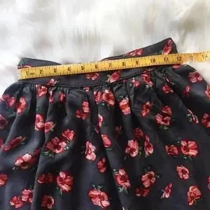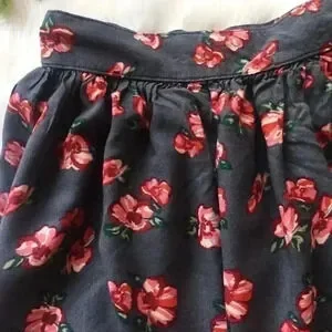 Hollister dark gray mini circle skirt with red/pink flowers. Elastic band waist. Excellent condition!