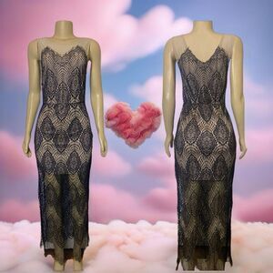❤️SOLD🎉Poetry Nude Mesh Black Lace Stretchy Maxi Dress Size Medium