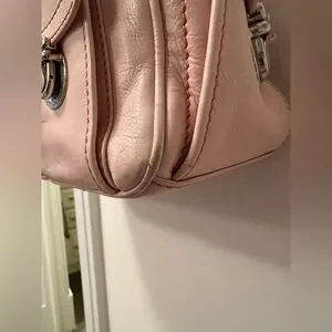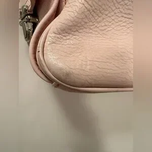 A timeless Marc Jacobs shoulder bag in light blush pink with silver hardware and woven stitching. Crafted from buttery soft leather, this bag is both stylish and functional. Perfect everyday tote or carry-all purse.