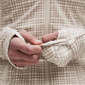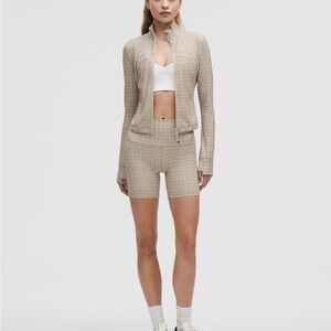 Stylish plaid zip-up jacket with matching leggings. Perfect for casual wear.