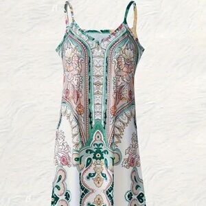 Beautiful bohemian V-neck maxi dress. The plural print and soft colors. Definitely make this dress perfect for any occasion.