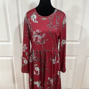 Like new🌹Burgundy Floral Maxi Dress with Long Sleeves size XL