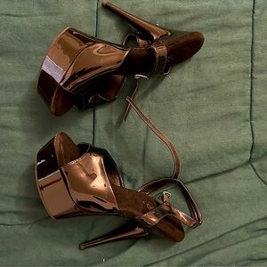 Step out in style with these stark black platform heels. Like new, easy to walk in and make a statement, these shoes offer both height and comfort.