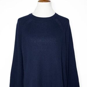 Style tags: Womens sweater, cable knit, chunky, fuzzy, mohair, cashmere, shirt, knit top, neutral, raglan, crew neck, round neck, long sleeve, lightweight, coastal, nautical, normcore, minimalist, luxury, stretch knit, ribbed knit, rib knit, crochet, casual, office, business casual, vineyard vines, blue, navy, navy blue, size large