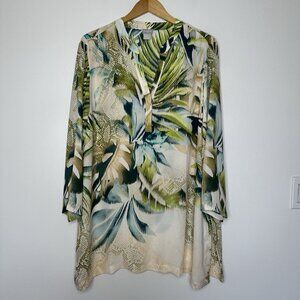 Chicos Snake & Tropical Print Tunic Top Size 2XL Bracelet Sleeve Y Neckline