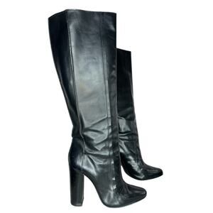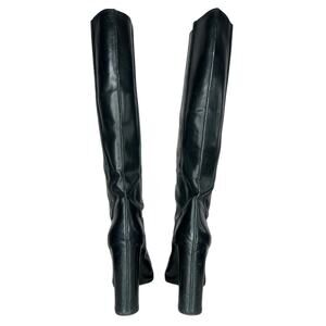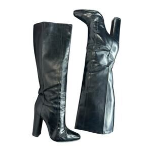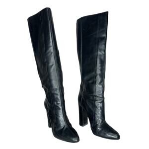 Alexander Wang Knee High Black Leather Boots Point Toe Stacked Heel Size 9