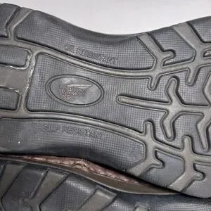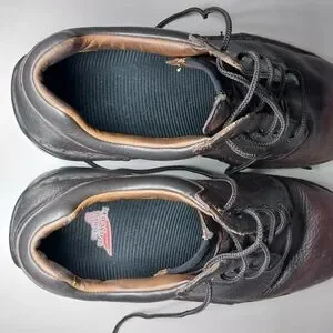 Red Wings Womens 8 Oxford Brown Leather Slip Resistant lace up steel toe shoes.