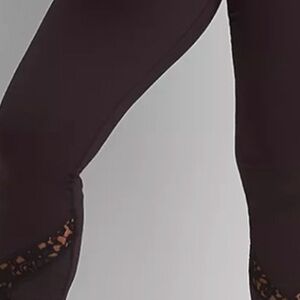 These black leggings showcase a beautiful lace cutout pattern on the lower leg, adding a touch of elegance to your outfit. Crafted from a stretchy, form-fitting material, they ensure comfort and flexibility throughout the day. The high-waisted design offers a flattering and secure fit.