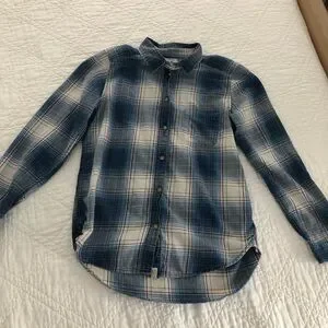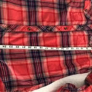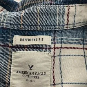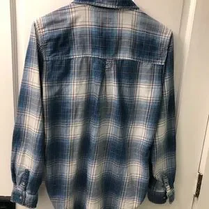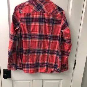 EUC Super comfy and very flattering styles and colors in this fun set of two cotton plaid button-up shirts! The blue plaid is Abercrombie and the orange plaid is Eddie Bauer. See pics for more details re. Gorgeous stitching, craftsmanship, pockets, button dealt, etc! More pics available but couldn’t post more due to 16 pic limit. Remember to bundle & save for the best deal!