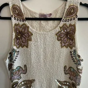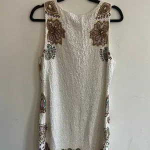 Calypso St. Barth Sequin Linen Mini Dress Size M White Pink Boho Resortwear