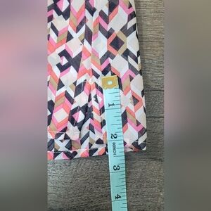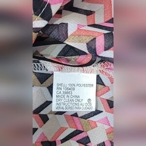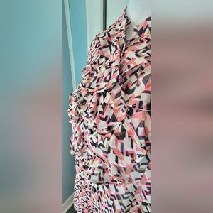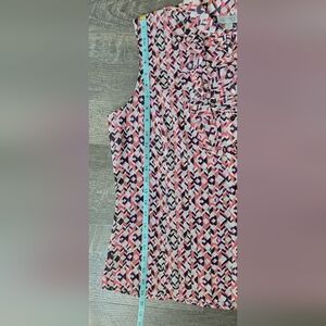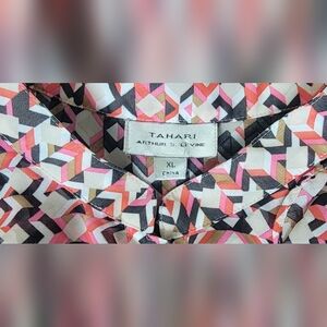 TAHARI Sleeveless Blouse Women's XL Pink Black & Tan Abstract Semi Sheer Ruffled