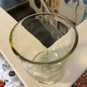 Clear glass decorative glass. Perfect for any occasion. Does have some internal cracks on stem, but doesn’t affect the use or feel.
